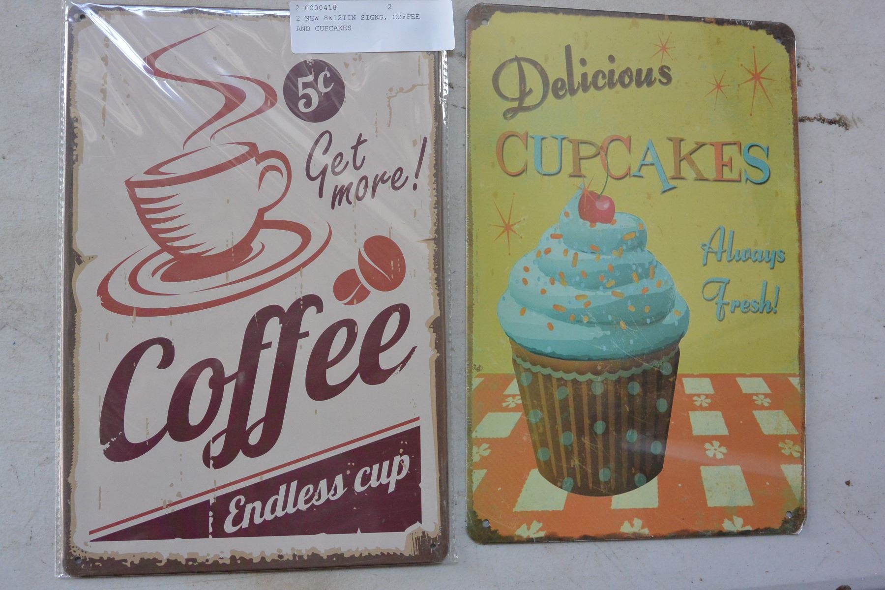2 NEW 8X12TIN SIGNS, COFFEE AND CUPCAKES