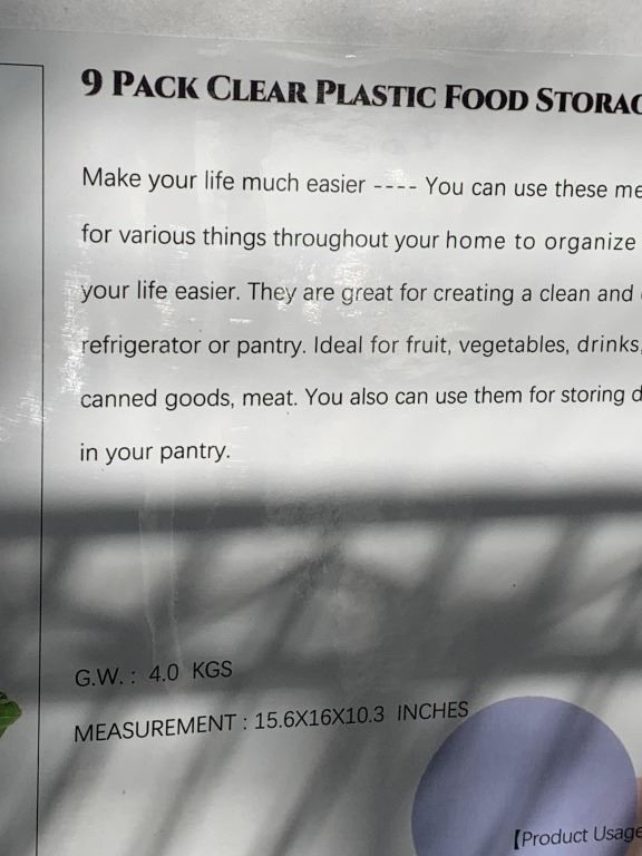 2 NEW 9PC CLEAR PLASTIC FOOD STORAGE BINS