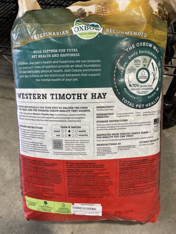 2 NEW BAGS WESTERN TIMOTHY HAY 2.55KG BAGS