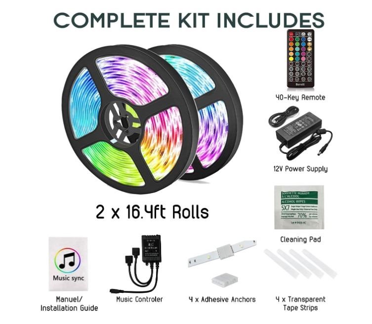 2 NEW BERELLI LED LIGHT STRIPS 32.8FT EACH, RGB COLOR AND MUSIC SYNC