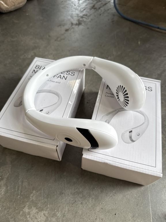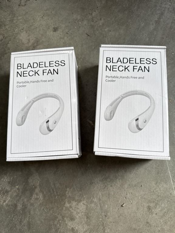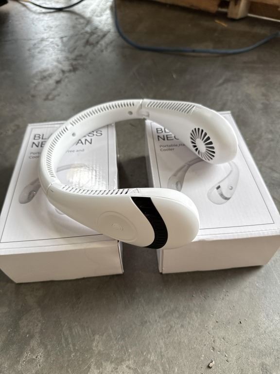 2 NEW BLADELESS NECK FANS, PORTABLE HANDS FREE, BUILT IN RECHARGEABLE 5000MAH TYPE C, WHITE