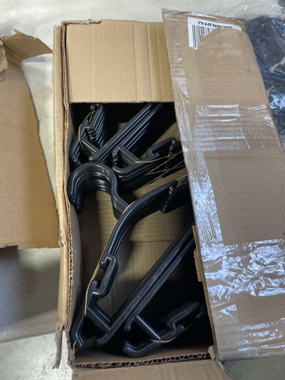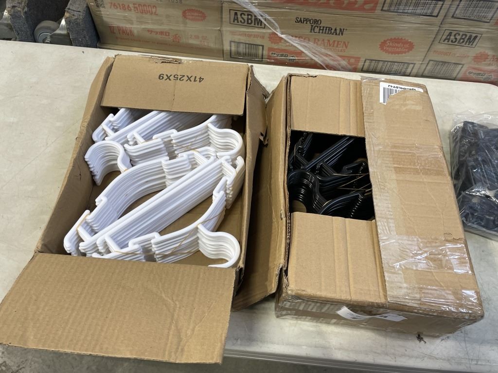 2 NEW BOXES OF BABY HANGERS AND BAG OF NEW CLIPS