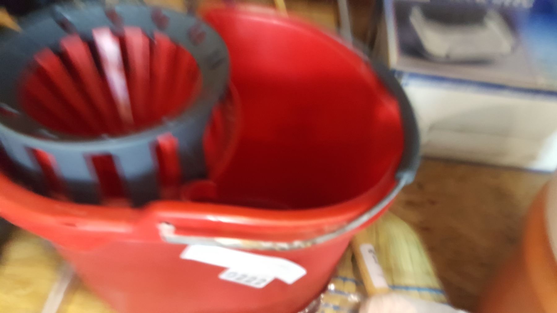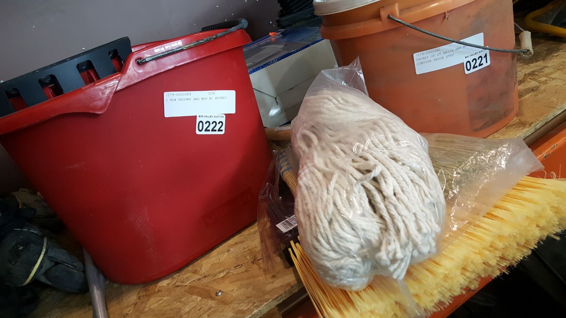 2 NEW BROOMS AND MOP W/ BUCKET