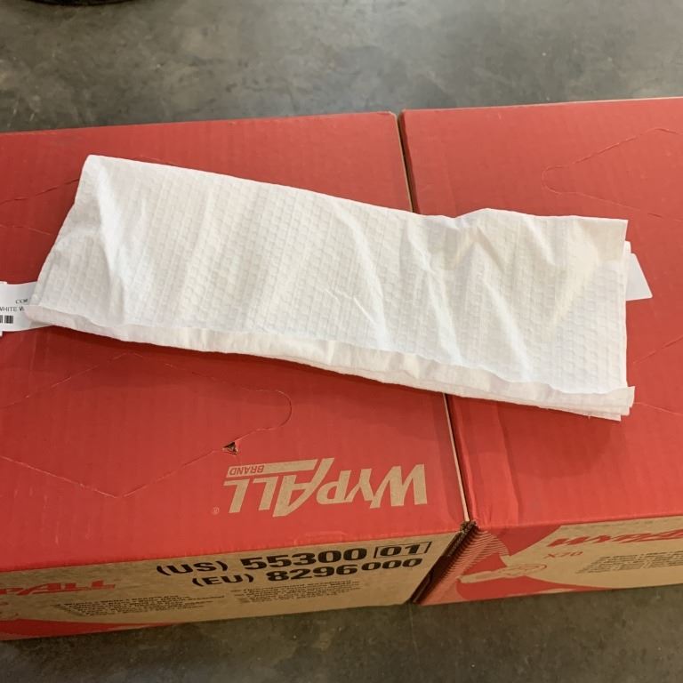 2 NEW CASES OF WYPALL BRAND WHITE WIPES, SIZE IS 11.1X16.8, 200 PER CASE, 400 TOTAL RETAIL $35 PER CASE