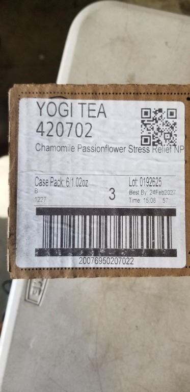 2 NEW CASES OF YOGI CHAMOMILE PASSIONFLOWER STRESS RELIEF TEA, CAFFEINE FREE, 16 TEA BAGS PER BOX, 6 BOXES PER CASE