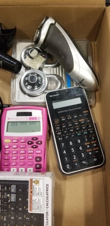 2 NEW COMBO LOCKS, CALCULATORS AND RAZORS ETC