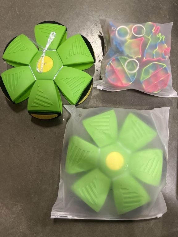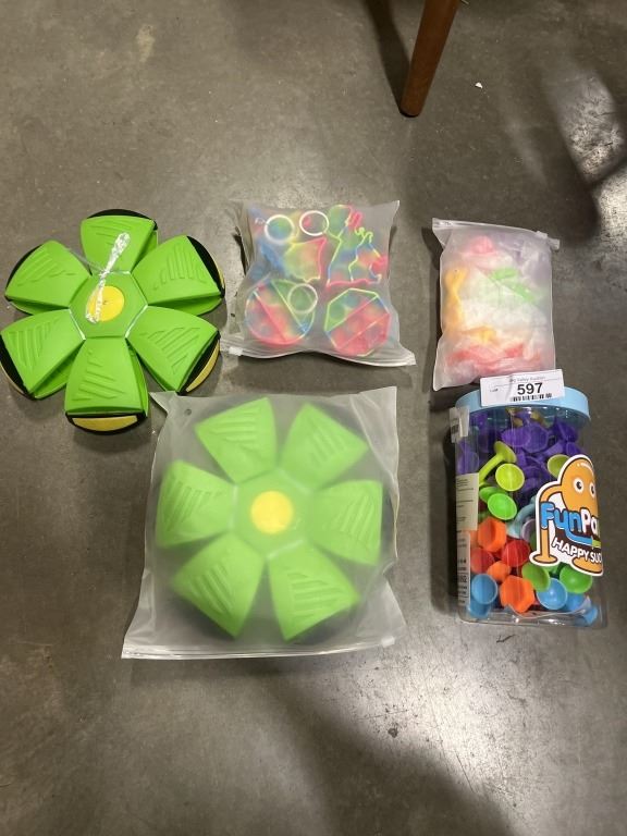 2 NEW DOG BALLS , FIDGIT POPPERS KEYCHAINS, SILICON SUCTION TOYS AND SLING TOYS