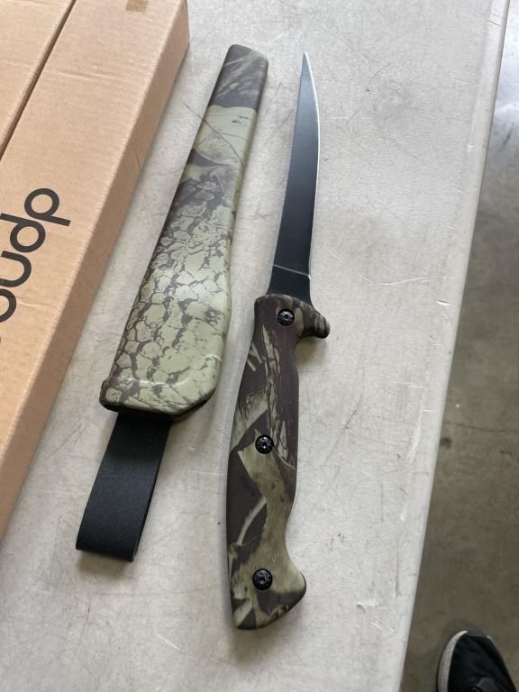 2 NEW DPNAO SHEATHED KNIVES WITH SHARPENING STONES