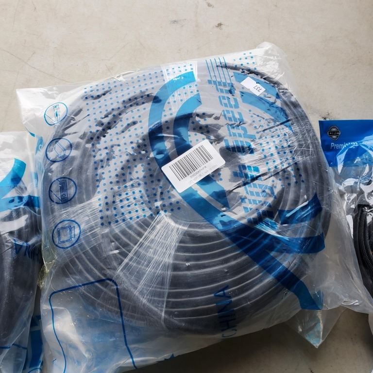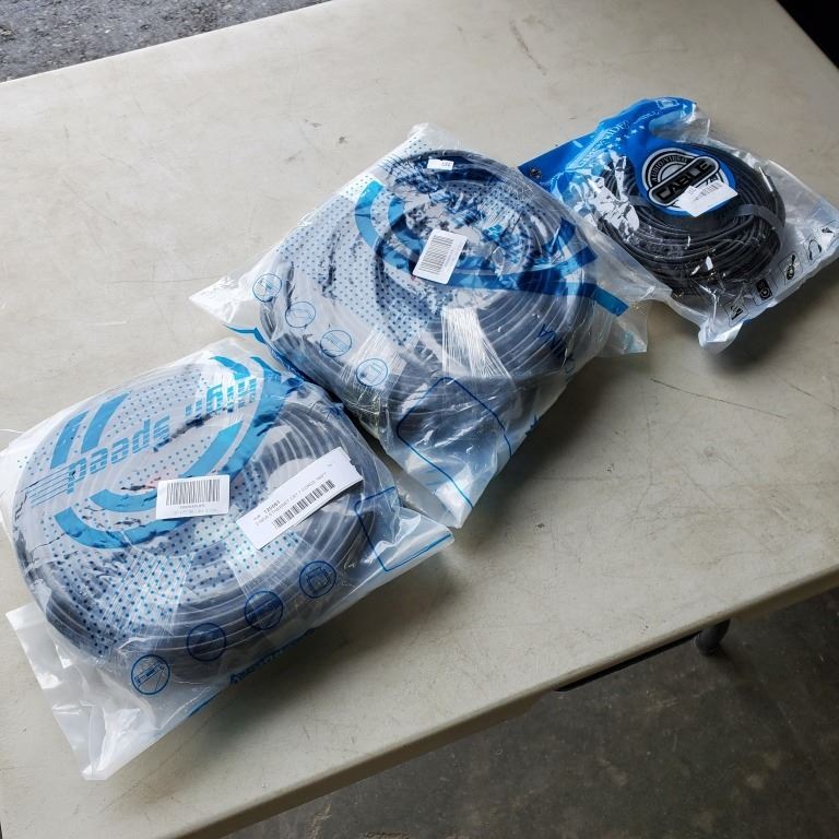 2 NEW ETHERNET CAT 7 CORDS 165FT EACH AND 90FT 3.5MM AUDIO CABLE