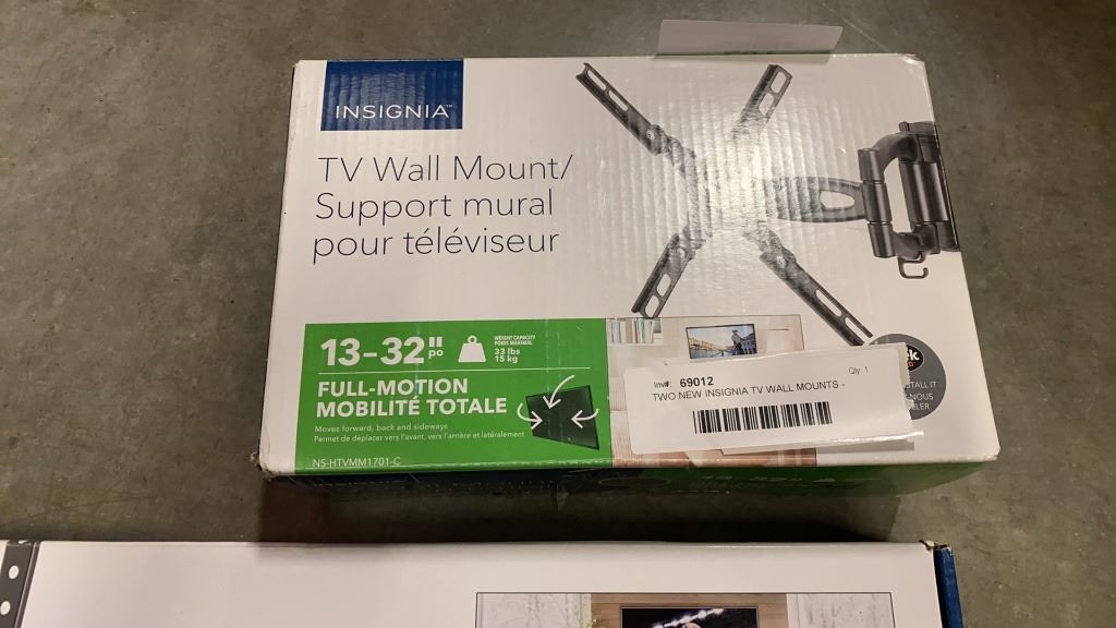 2 NEW INSIGNIA TV WALL MOUNTS - 13-32 ICH FULL MOTION AND 33-46 INCH FIXED POSITION