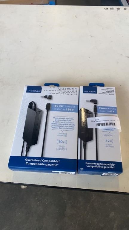 2 NEW INSIGNIA UNIVERSAL LAPTOP CHARGERS 65 WATT AND HIGH POWER 180 WATT