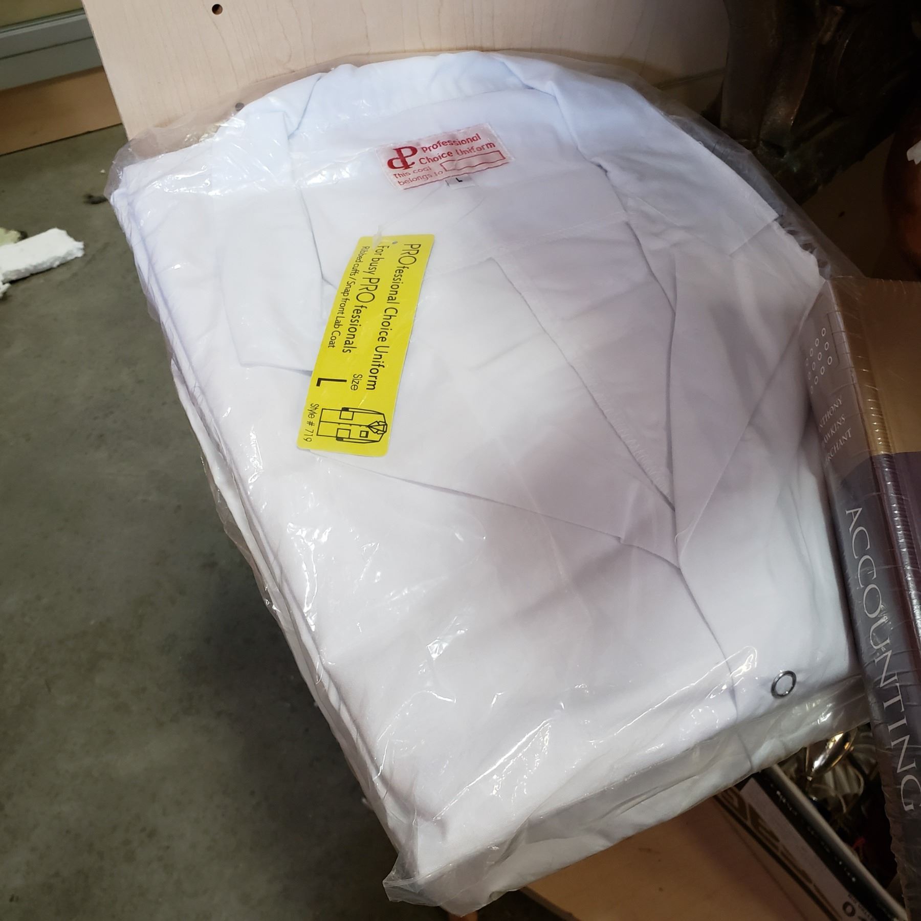 2 NEW LAB COATS AND NEW ACCOUNTING TEXT AND CASES BOOK