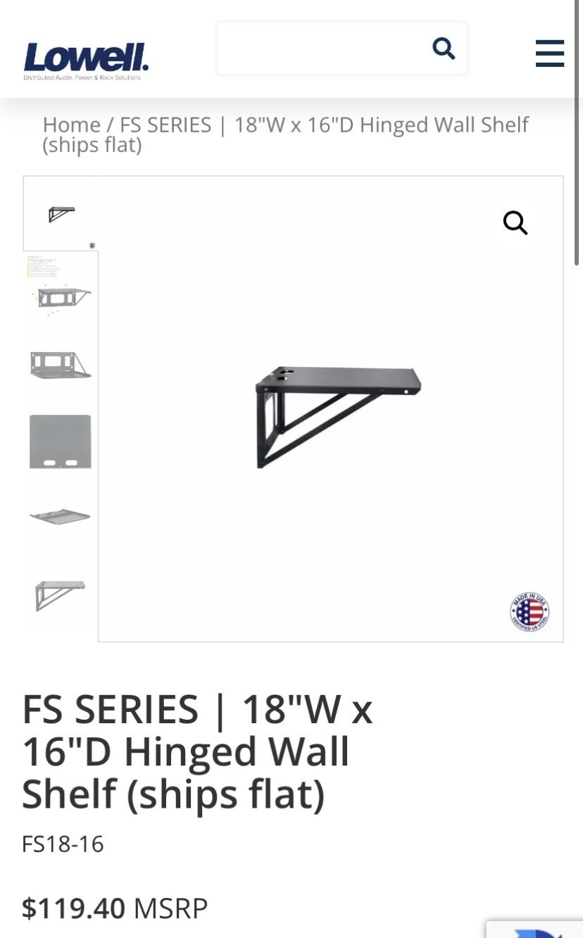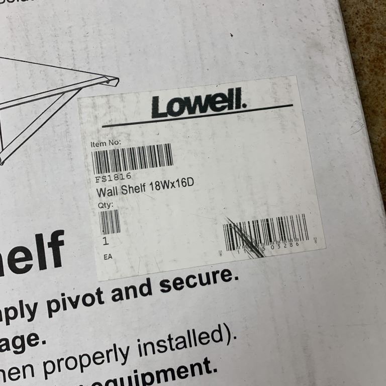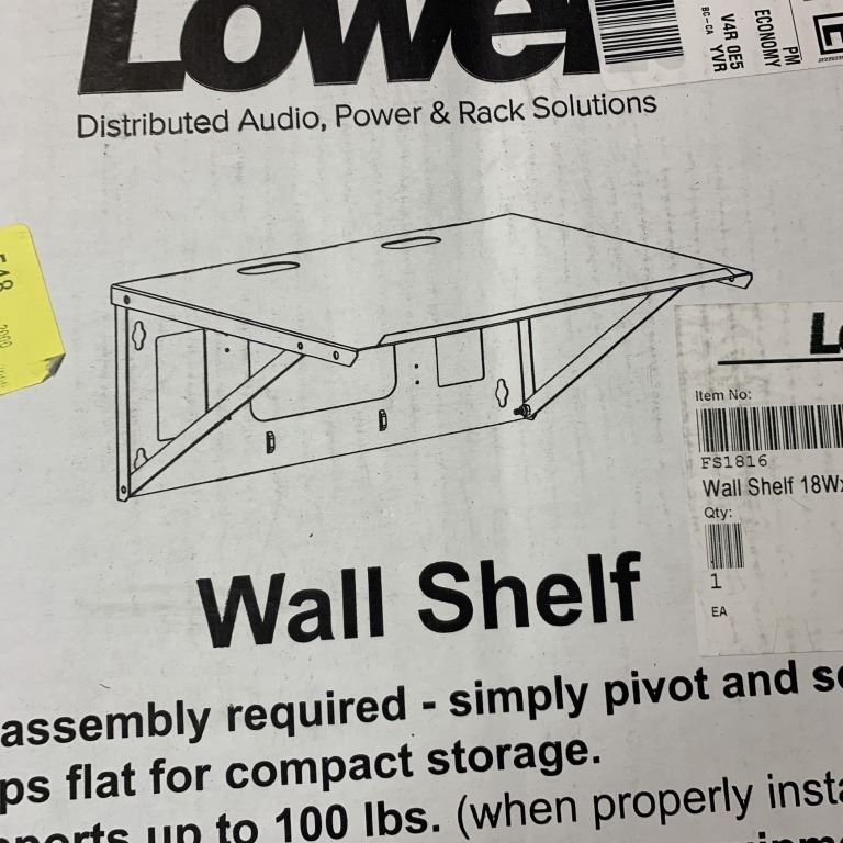 2 NEW LOWELL WALL SHELVES 18X16 HOLDS UP TO 100 LB RETAIL $210