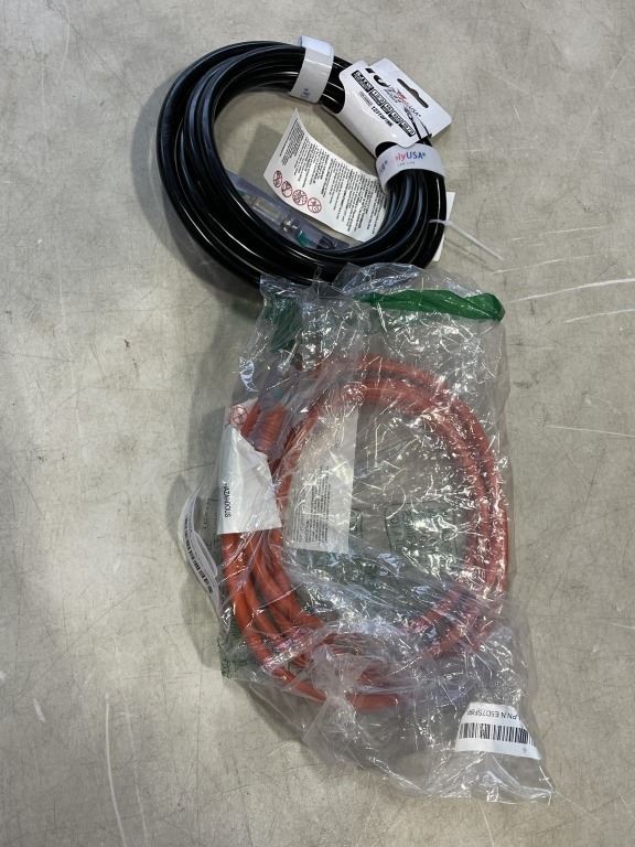 2 NEW ORANGE AND BLACK INDOOR OUTDOOR 10FTFT HEAVY DUTY LIGHTED EXTENSION CORD, 12AWG AND 14AWG, 3 W