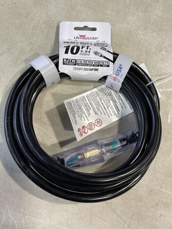 2 NEW ORANGE AND BLACK INDOOR OUTDOOR 10FTFT HEAVY DUTY LIGHTED EXTENSION CORD, 12AWG AND 14AWG, 3 WIRE