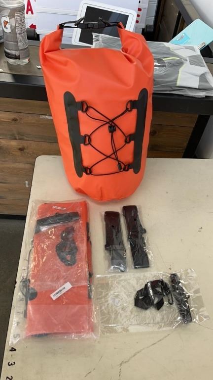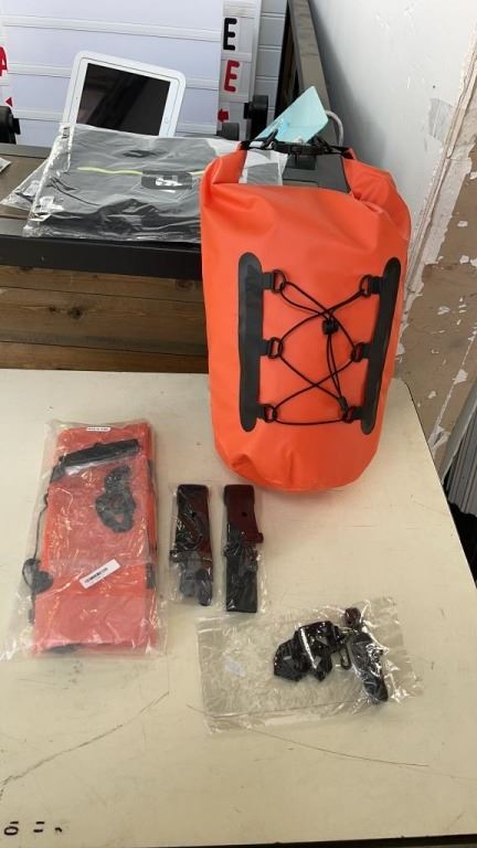 2 NEW ORANGE DRY BAGS WITH CARRY STRAPS AND WATERPROOF BAG