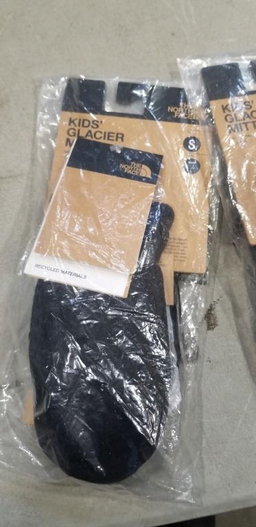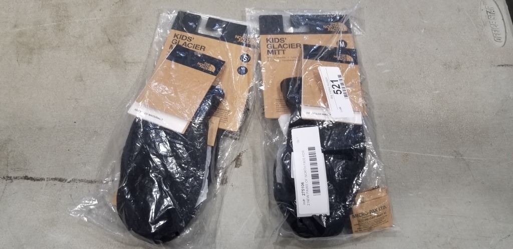 2 NEW PAIRS OF NORTH FACE KIDS GLACIER MITTS, SIZE MEDIUM AND SMALL