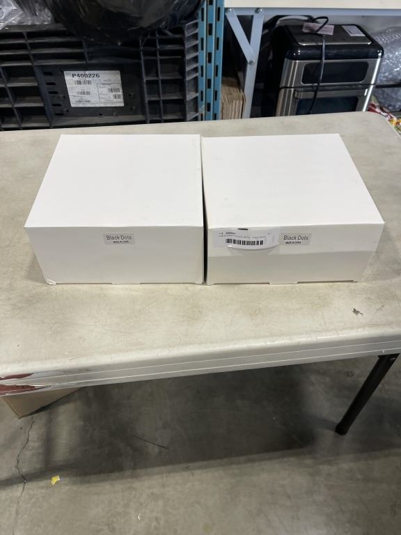 2 NEW PARTY PLATE SETS BLACK DOTS - EACH BOX CONTAINS CUPS, STRAWS, NAPKINS, AND 2 PLATE SIZES