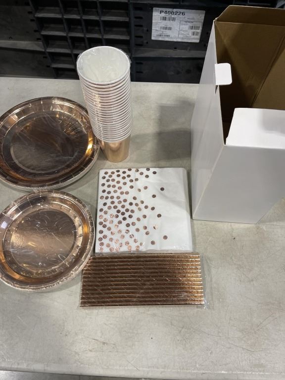 2 NEW PARTY PLATE SETS ROSE GOLD - EACH BOX CONTAINS CUPS, STRAWS, NAPKINS, AND 2 PLATE SIZES
