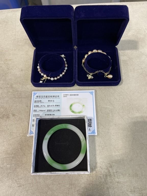 2 NEW PEARL BRACELETS AND AUTHENIC JADE BRACELET