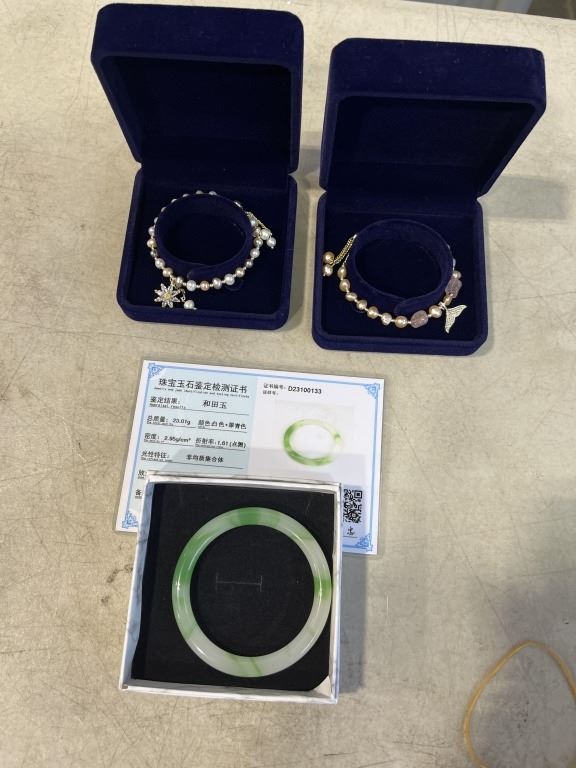 2 NEW PEARL BRACELETS AND AUTHENIC JADE BRACELET