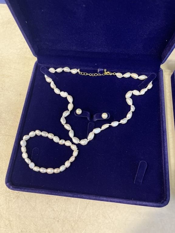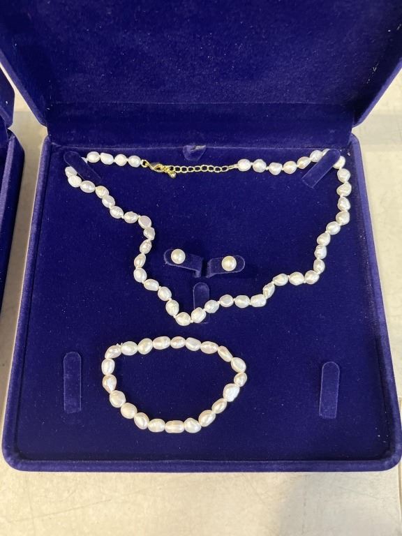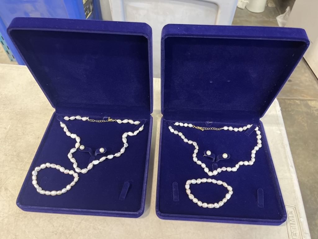 2 NEW PEARL NECKLACE, EARRINGS AND BRACELET SETS