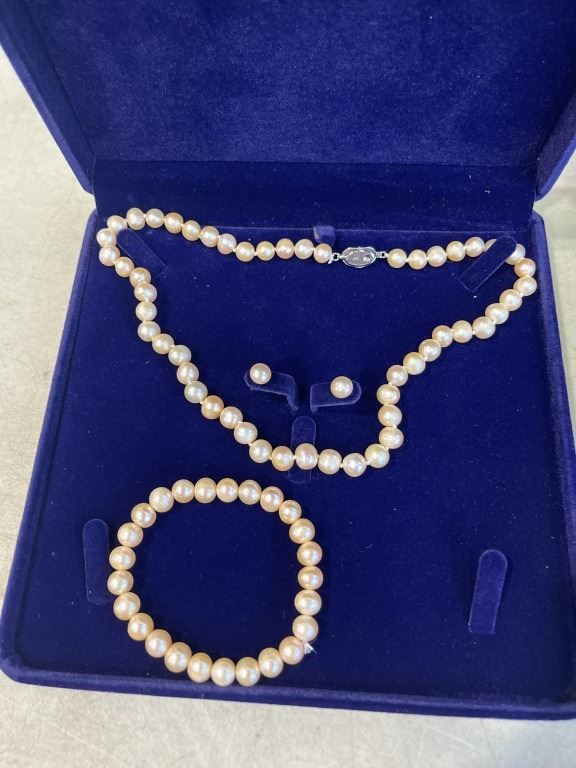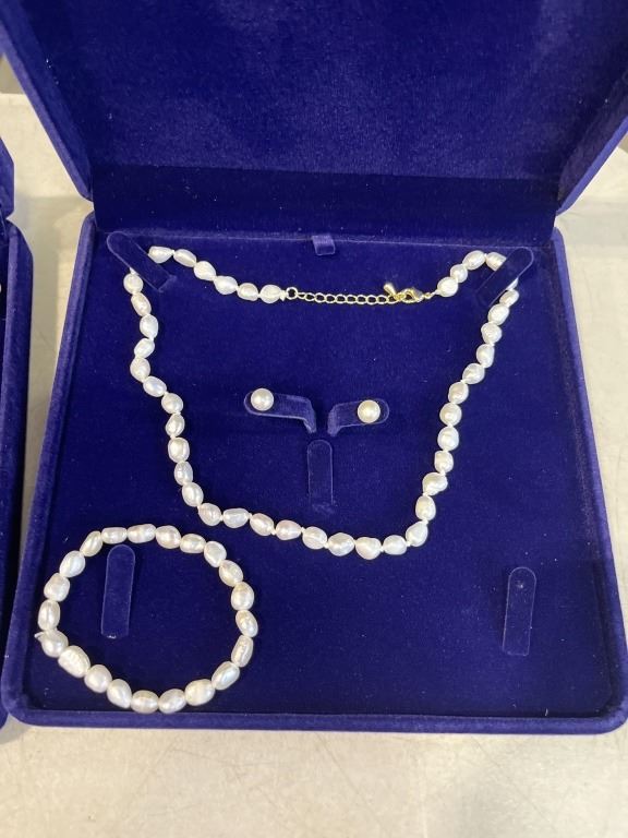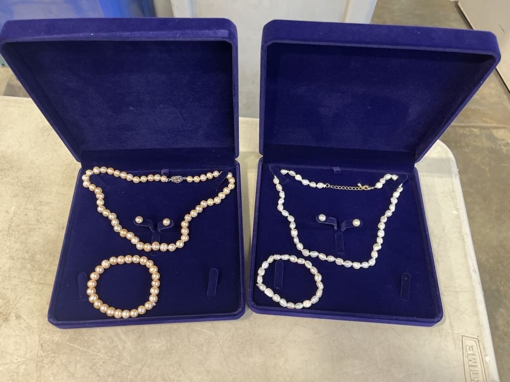 2 NEW PEARL NECKLACE, EARRINGS AND BRACELET SETS