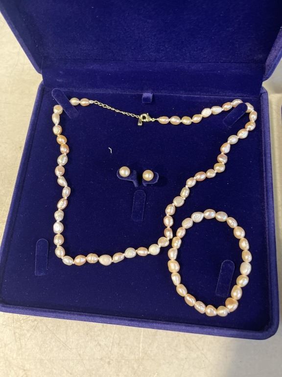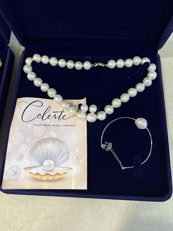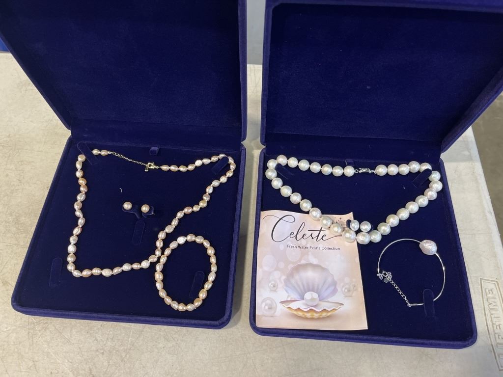 2 NEW PEARL NECKLACE, EARRINGS AND BRACELET SETS