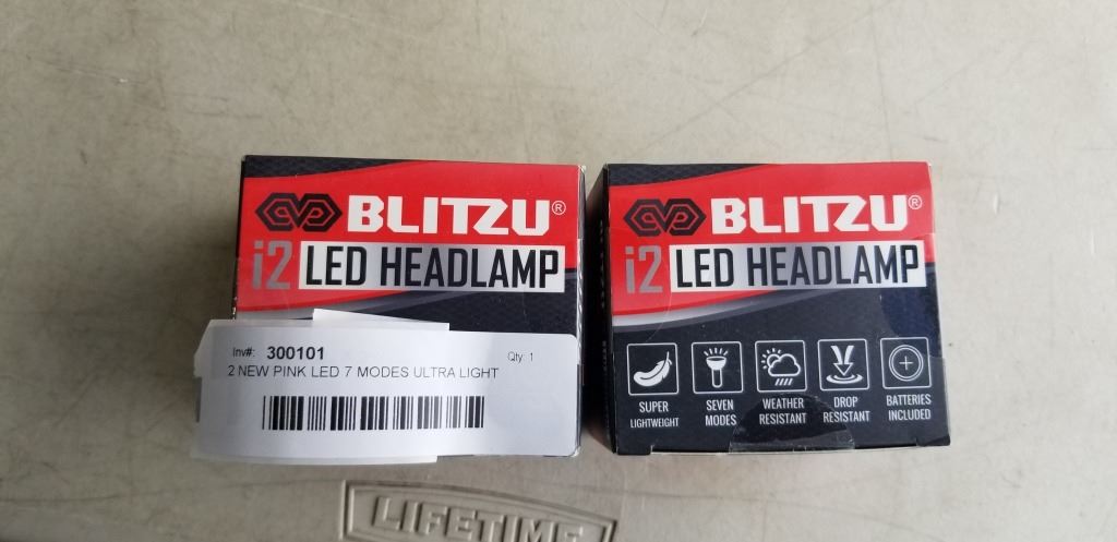 2 NEW PINK LED 7 MODES ULTRA LIGHT WEATHER RESISTANT HEADLAMPS WITH BATTERIES
