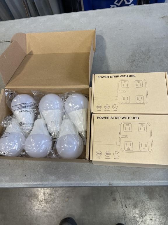 2 NEW POWER STRIPS WITH USB AND 6 PACK LED E26 BULBS