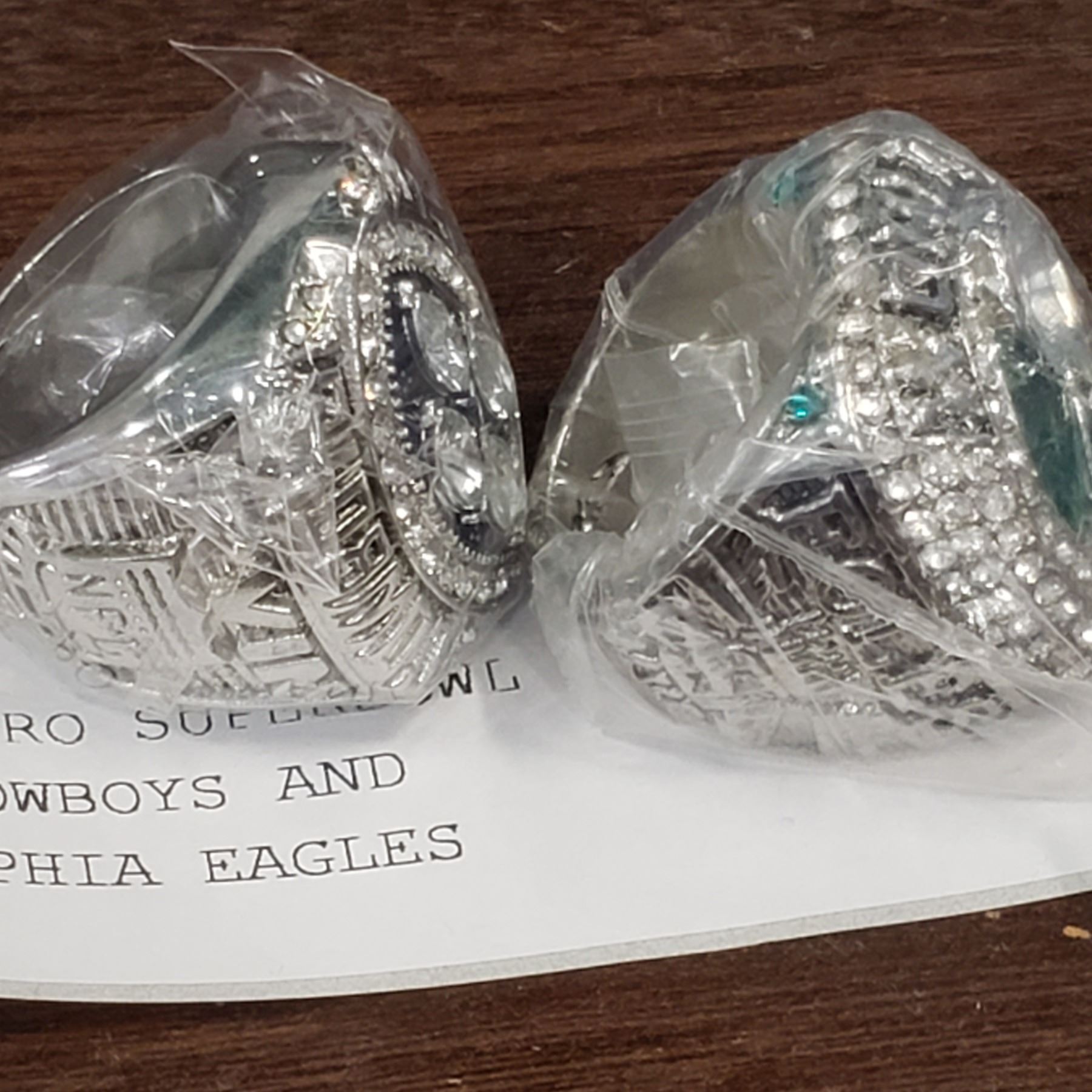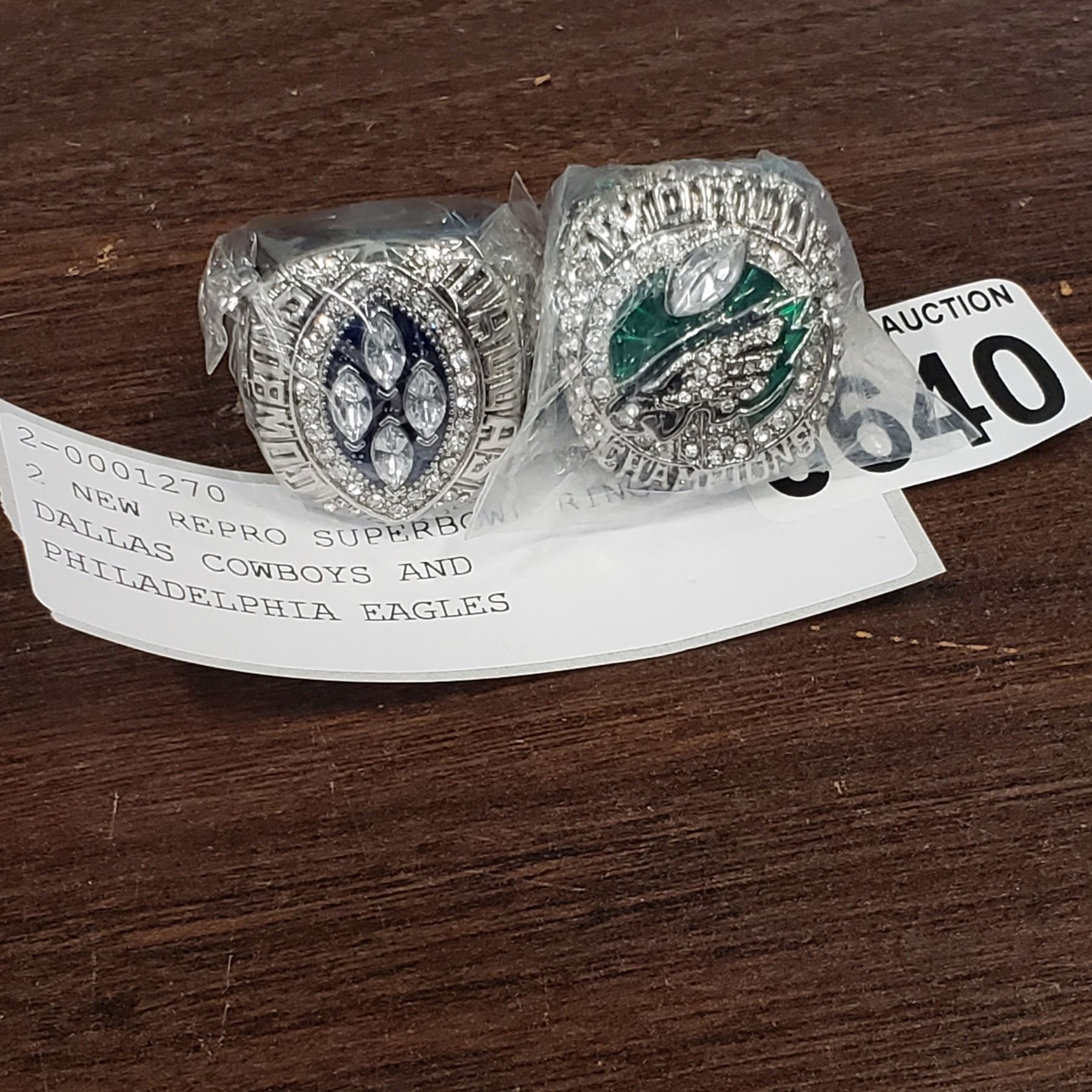 2 NEW REPRO SUPERBOWL RINGS DALLAS COWBOYS AND PHILADELPHIA EAGLES