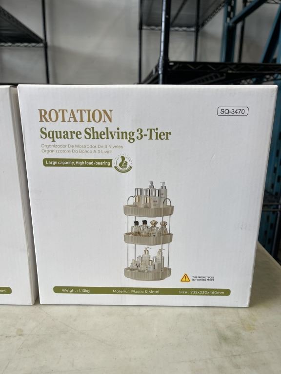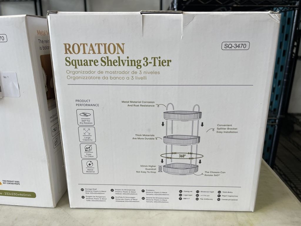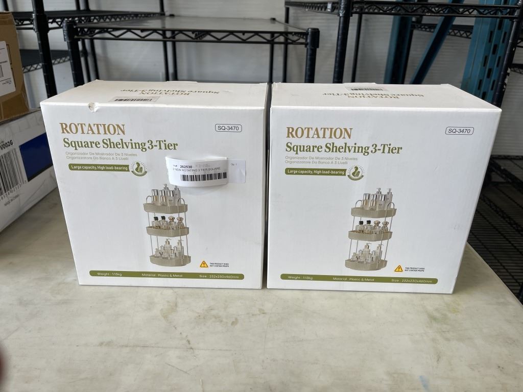 2 NEW ROTATING 3 TIER SQUARE SHELVING UNITS