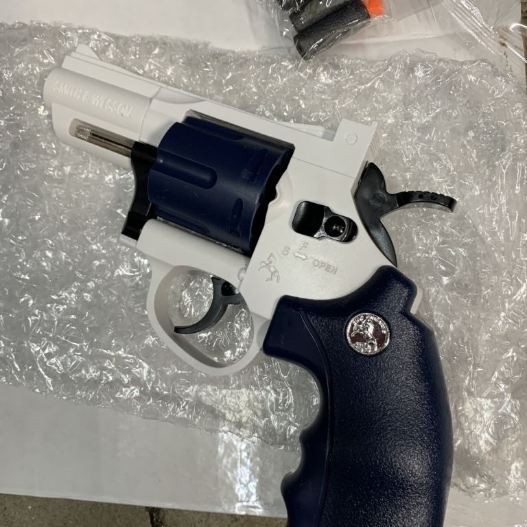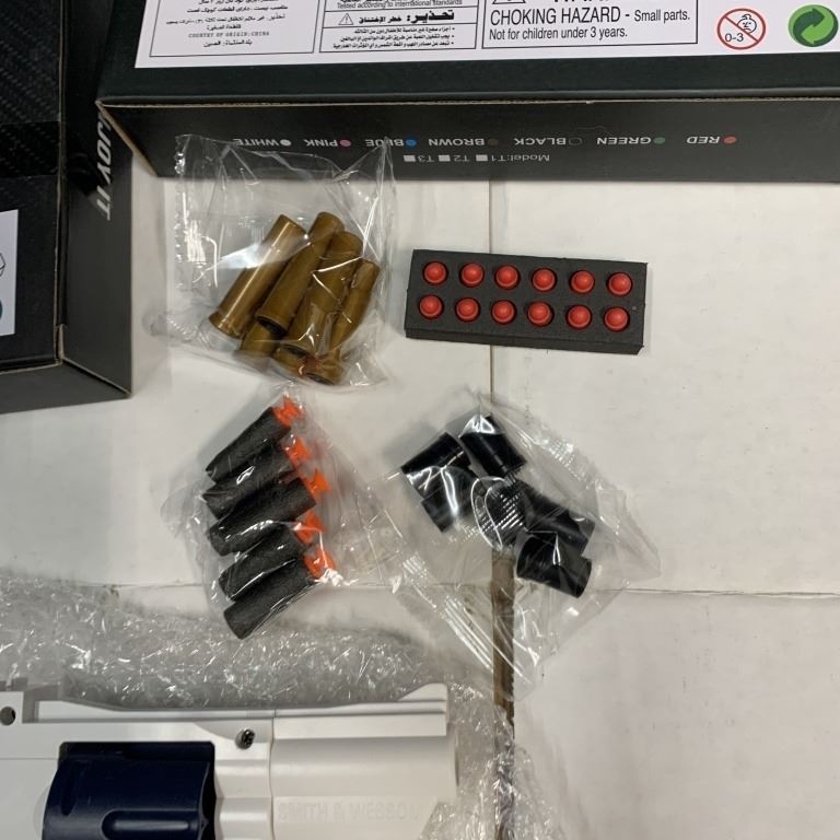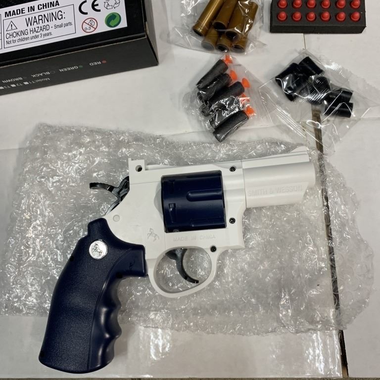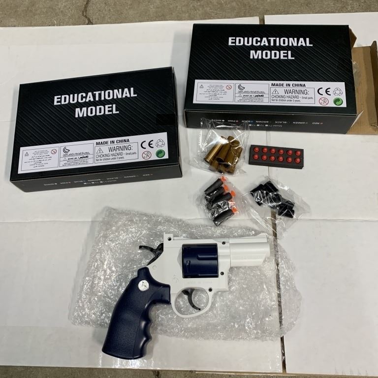 2 NEW SOFT EJECTION EDUCATIONAL REVOLVER GUNS WITH 2 DIFFERENT SETS OF SHELLS