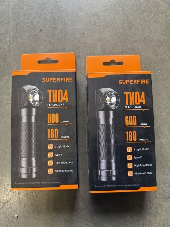 2 NEW SUPERFIRE TH04 FLASHLIGHTS, RETAIL $40 EACH