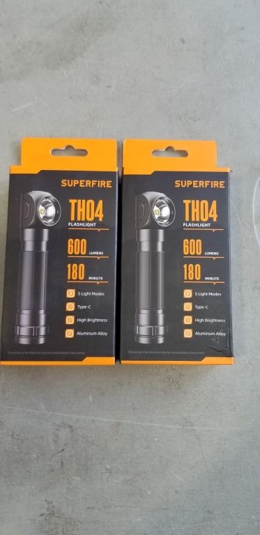 2 NEW SUPERFIRE TH04 RECHARGEABLE LED FLASHLIGHTS, WITH TAIL MAGNET, 5 LIGHT MODES, TYPE-C CHARGING,