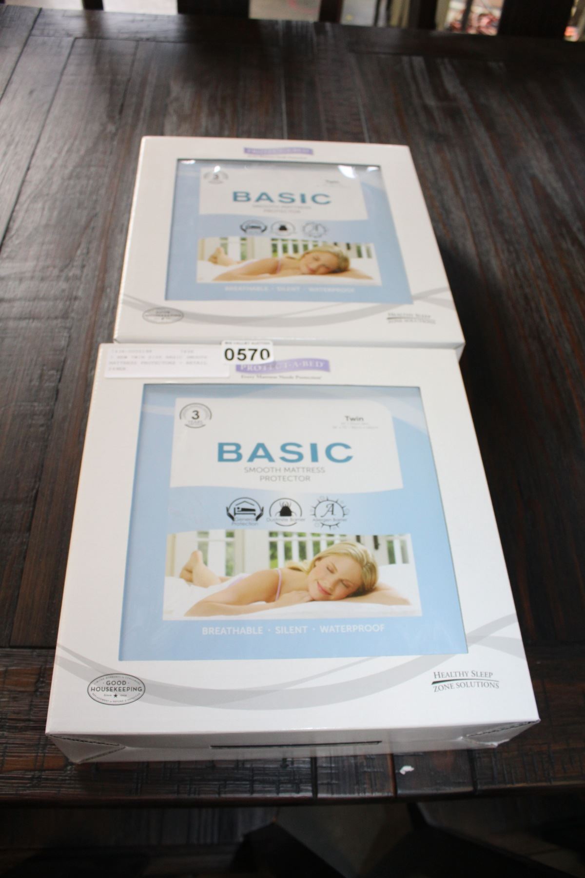 2 NEW TWIN SIZE BASIC SMOOTH MATTRESS PROTECTORS - RETAIL $49EA