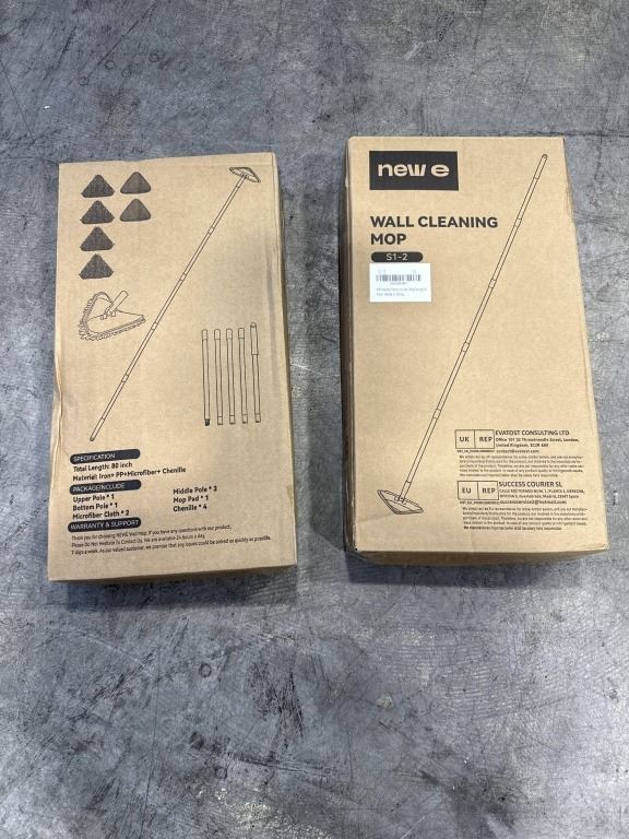 2 NEW WALL AND CEILING MOP/ DUSTING SETS, 80 INCH POLE, 1 MOP PAD, 4 CHENILLE PADS AND 2 MICROFIBRE EACH