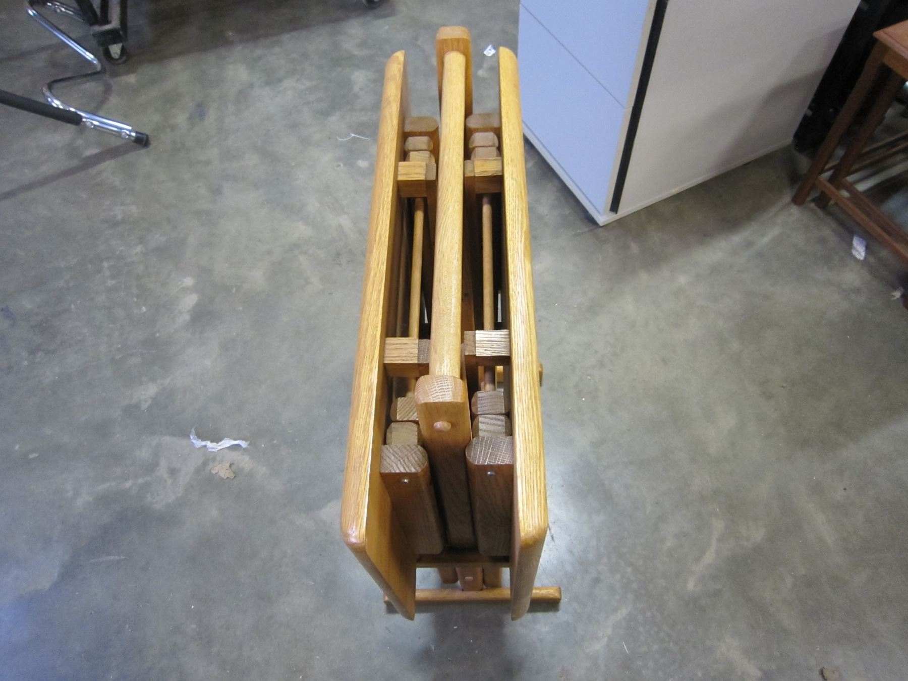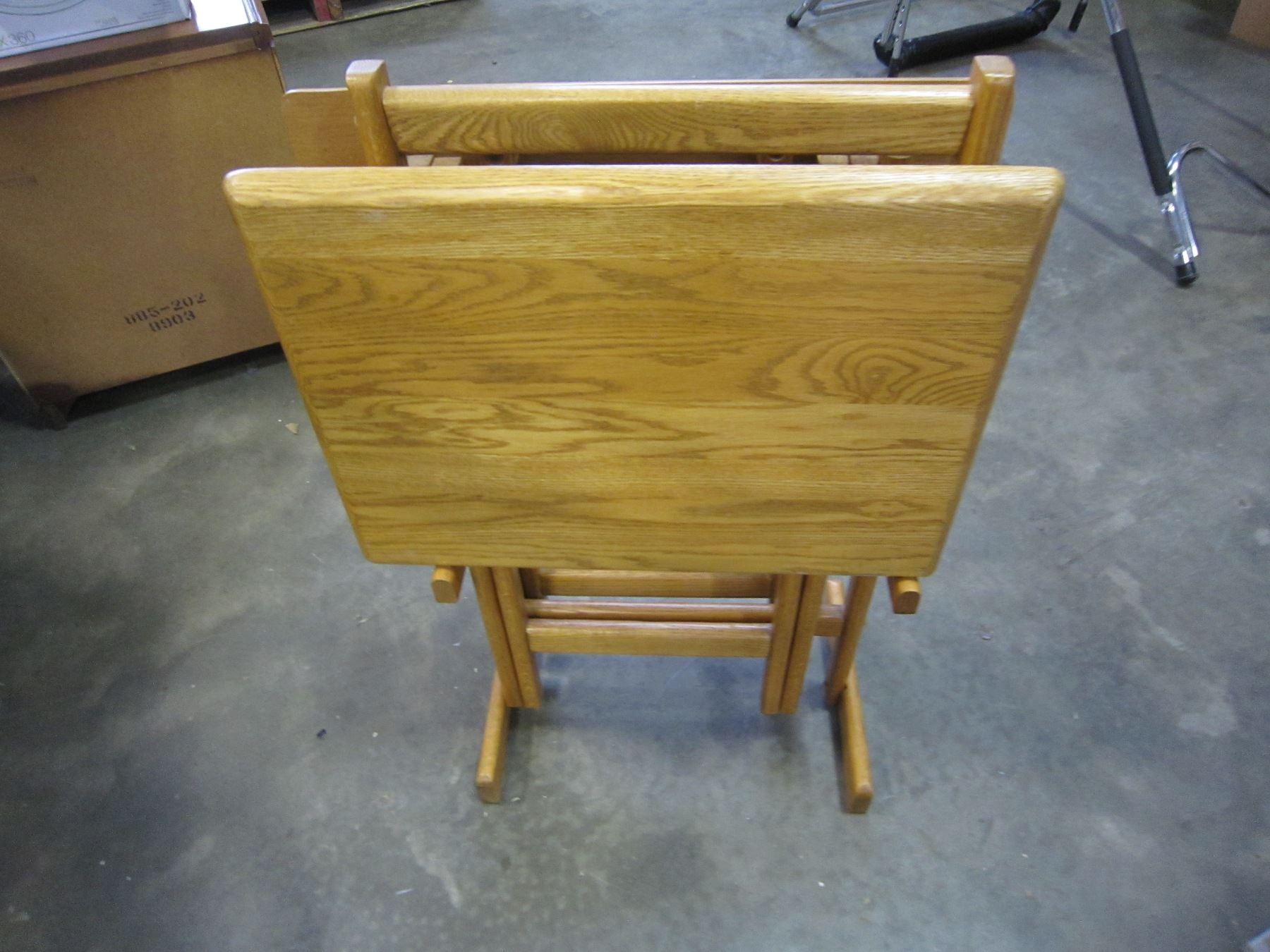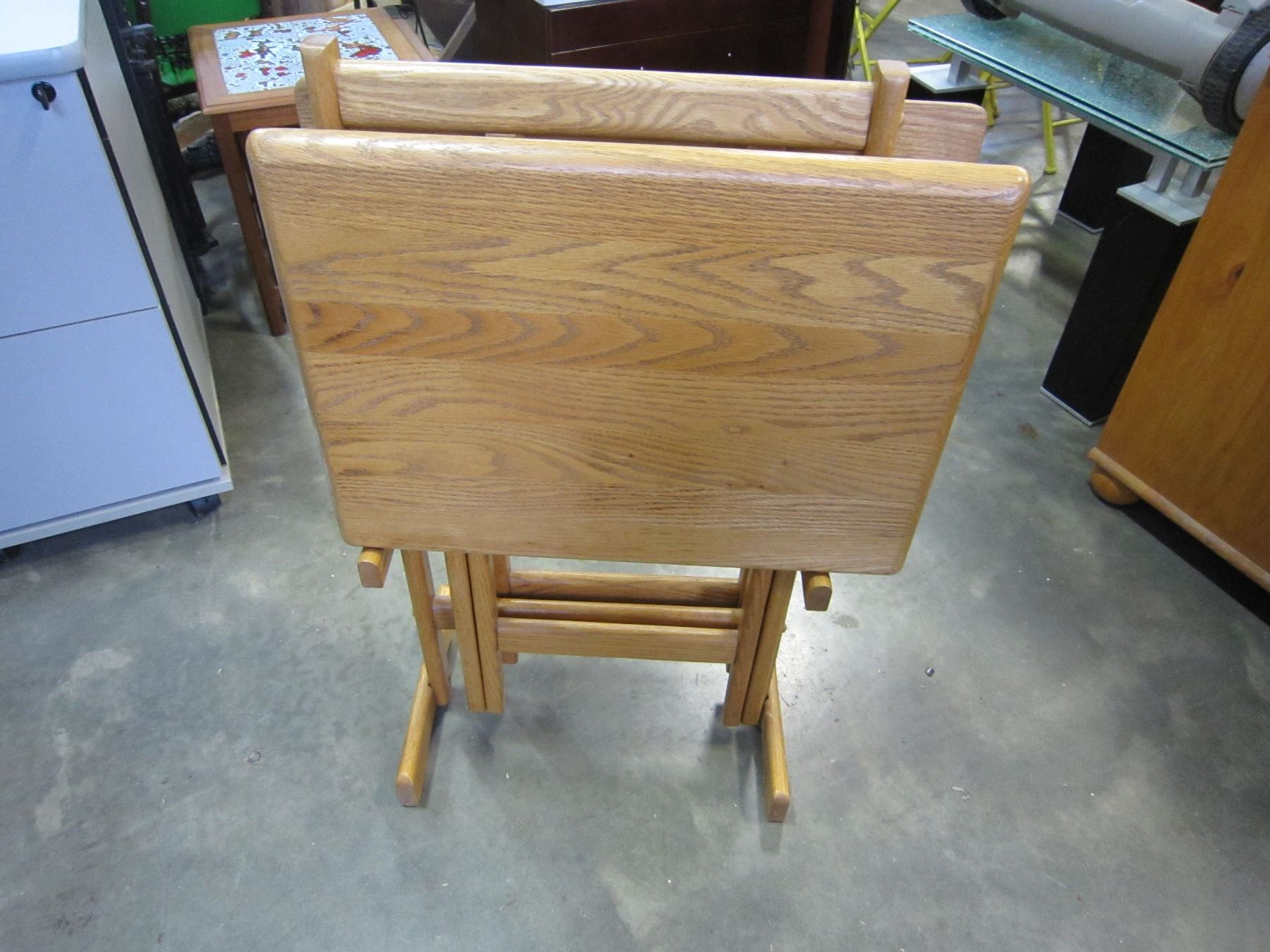 2 OAK TV TRAYS ON STAND