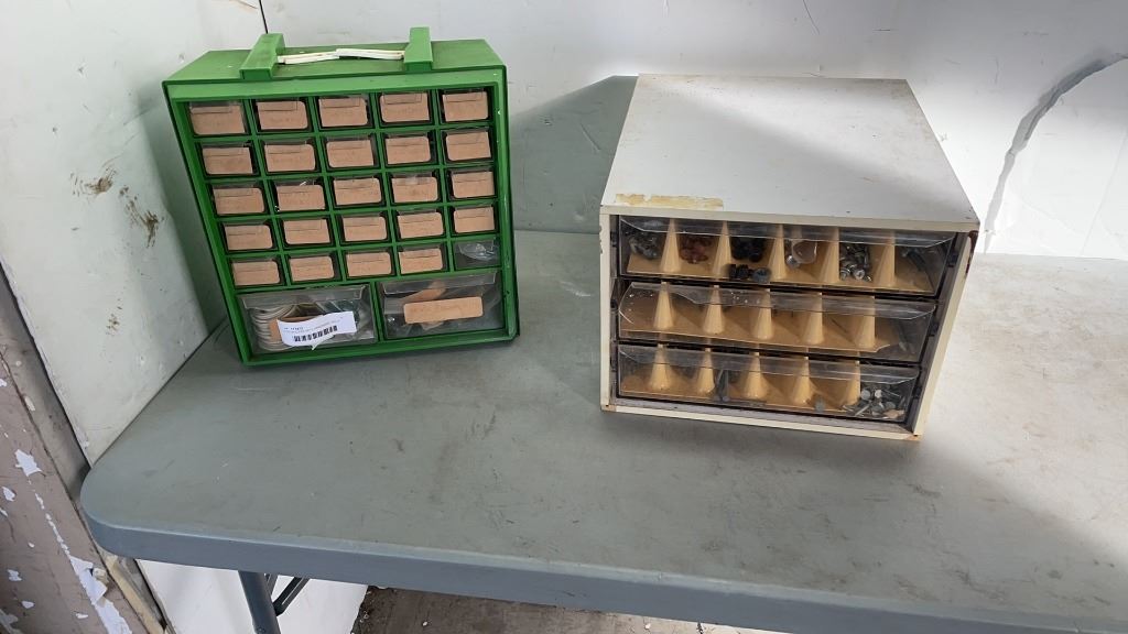 2 ORGANIZERS WITH HARDWARE, NAILS, FUSES, ELECTRICAL HARDWARE