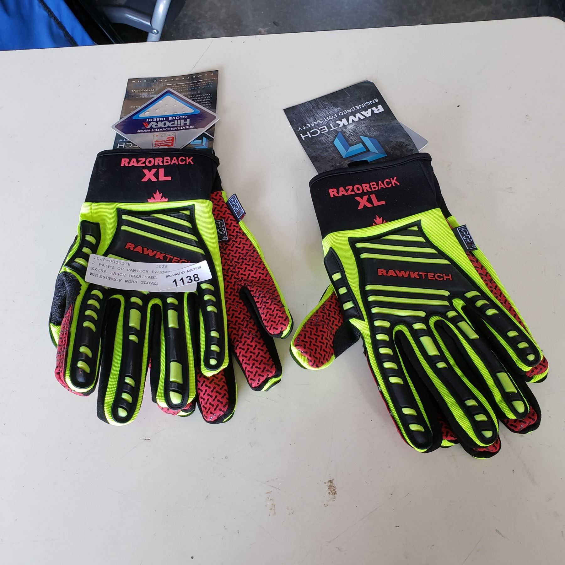 2 PAIRS OF RAWTECH RAZORBACK EXTRA LARGE BREATHABLE WATERPROOF WORK GLOVES