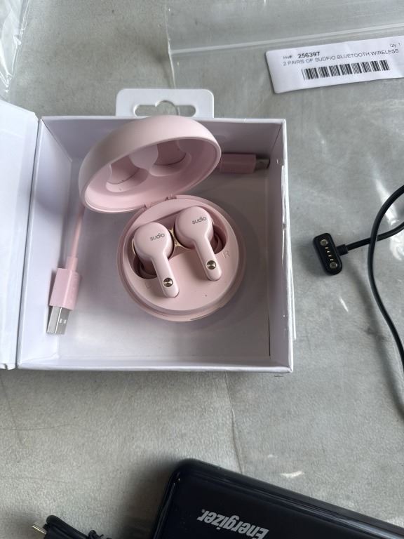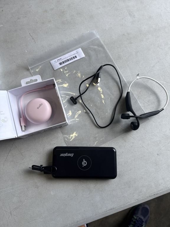 2 PAIRS OF SUDFIO BLUETOOTH WIRELESS HEADPHONES, ONE IS B1 BONE CONDUCTION OPEN EAR, AND ENERGIZER 10,000MAH WIRELESS QI BATTERY BANK