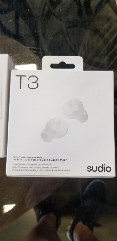 2 PAIRS OF SUDIO T3 IN EAR BLUETOOTH BUDS, GYM READY