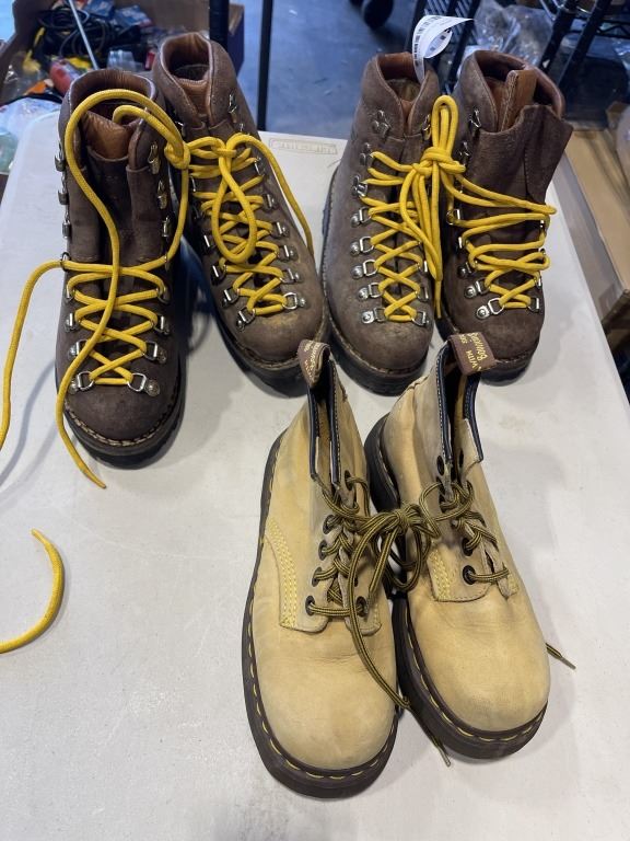 2 PAIRS OF TYROL WORK BOOTS AND PAIR OF DOC MARTENS, SIZE 5, 6-6.5
