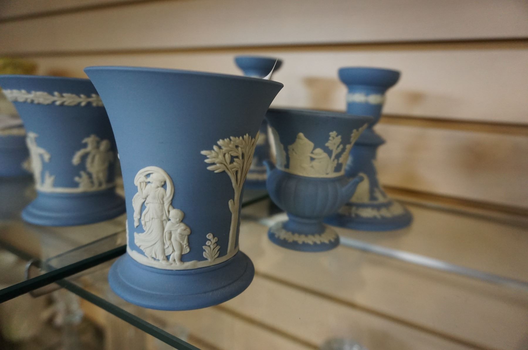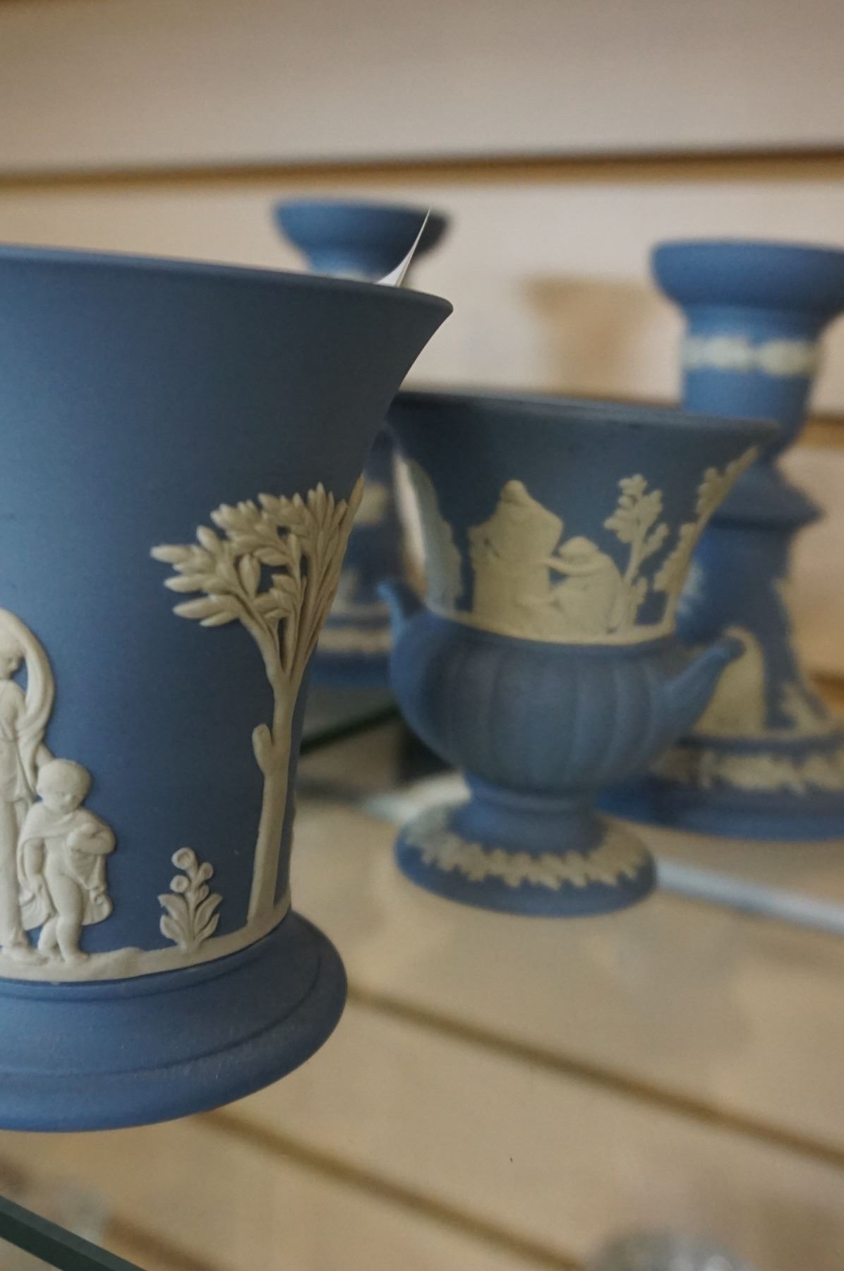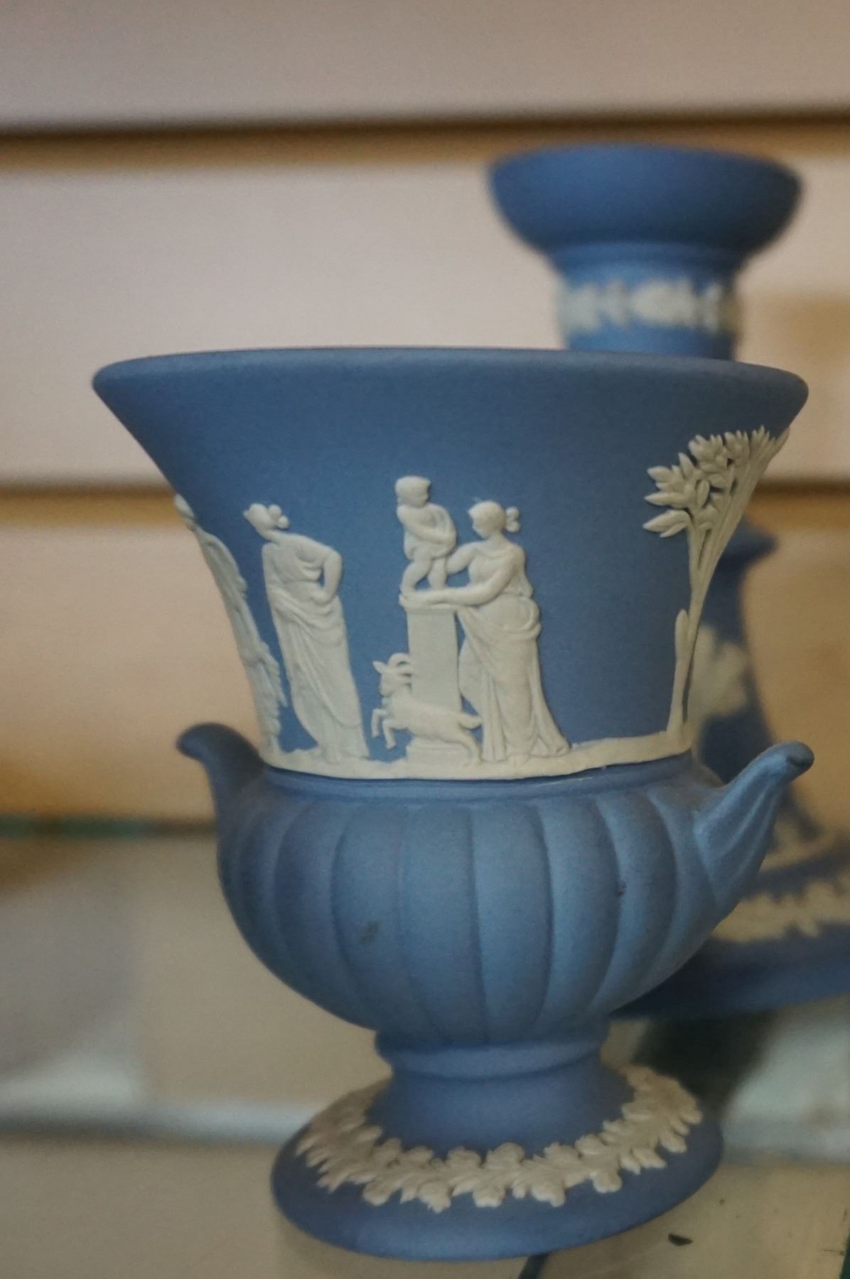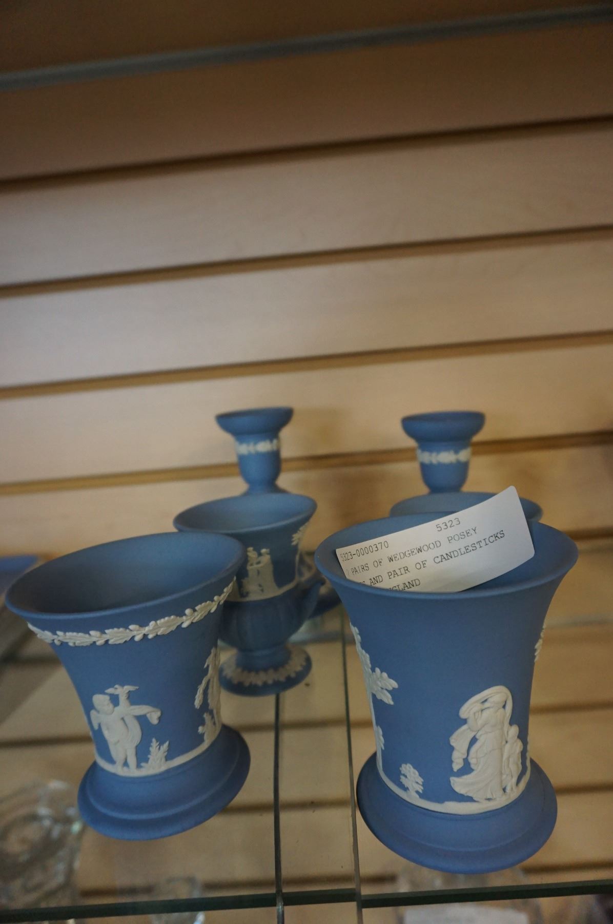 2 PAIRS OF WEDGEWOOD POSEY VASES AND PAIR OF CANDLESTICKS MADE IN ENGLAND