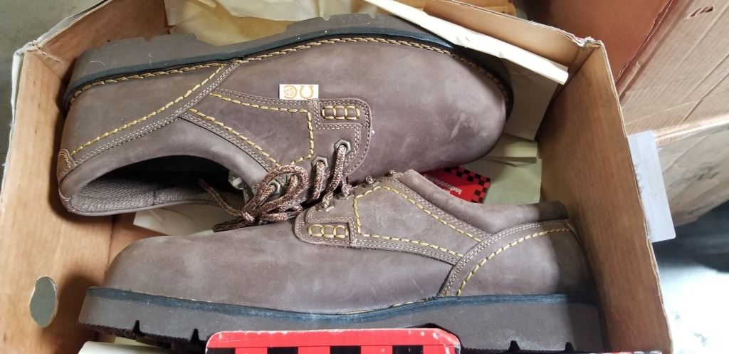 2 PAIRS OF WORK SHOES SIZE 12 ONE PAIR IS STEEL TOED