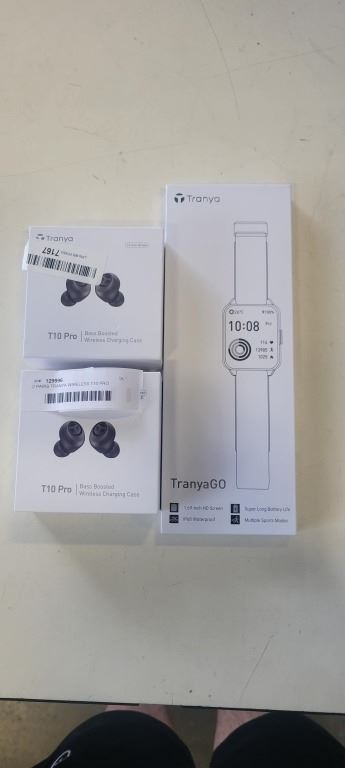 2 PAIRS TRANYA WIRELESS T10 PRO EARBUDS AND TRANYAGO SMARTWATCH