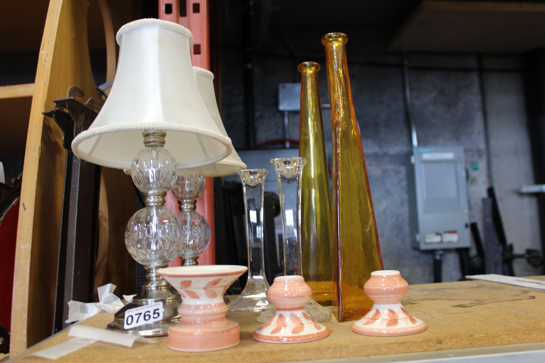 2 PARTY LITE CANDLE STICKS, GLASS CANDLE STICKS, AND VASES