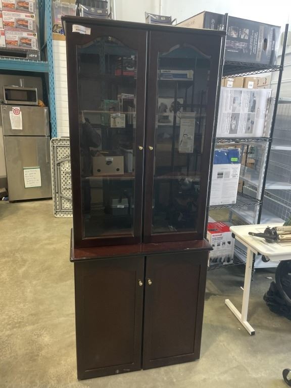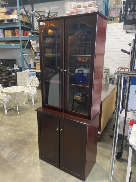 2 PC MAHOGANY FINISH LIBRARY CABINET