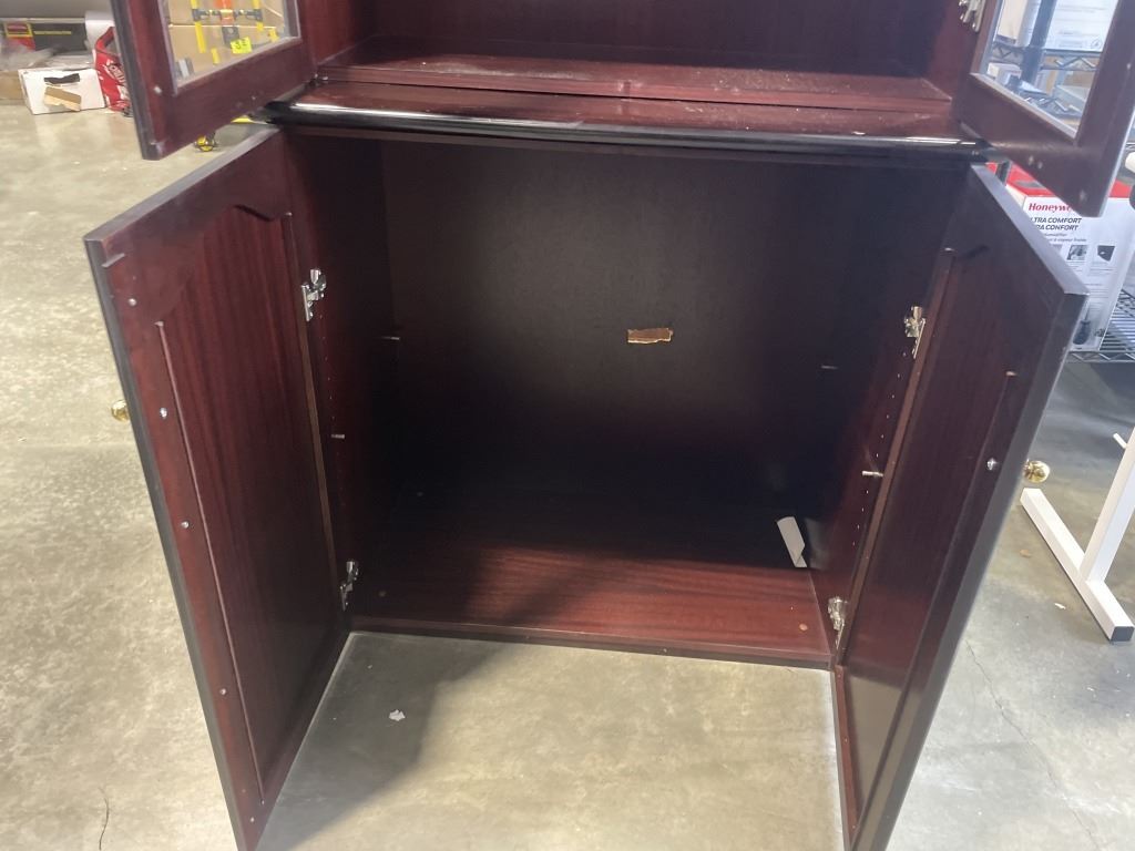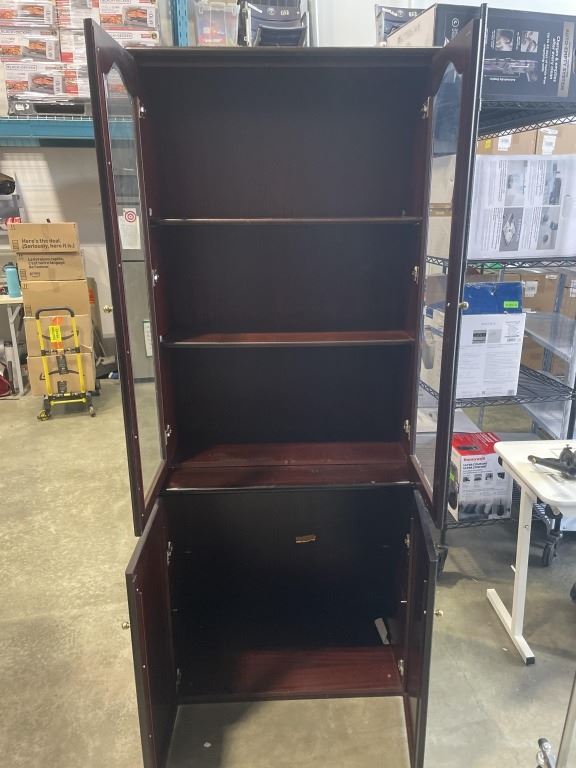 2 PC MAHOGANY FINISH LIBRARY CABINET