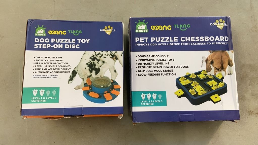 2 PET PUZZLE TOYS - CHESSBOARD AND STEP-ON DISC